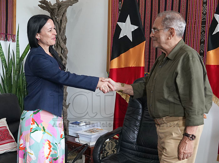DILI, 02 Marsu 2026 (TATOLI)—Country Representative interinu foun husi Asia Foundation, Heidi Arbuckle, segunda ne’e, hasoru malu no enkontru ho Prezidente Repúblika, José Ramos-Horta hodi diskute kona-ba Asia Foundation nia komprimisiu kona-ba promosaun turizmu no halakon violénsia kontra feto.