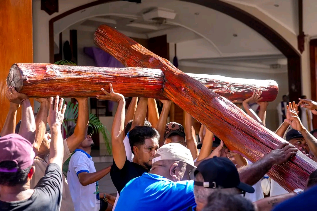Ai-krús Santa sinál Jezús salva umanidade husi sala. Imajen Mídia GPM